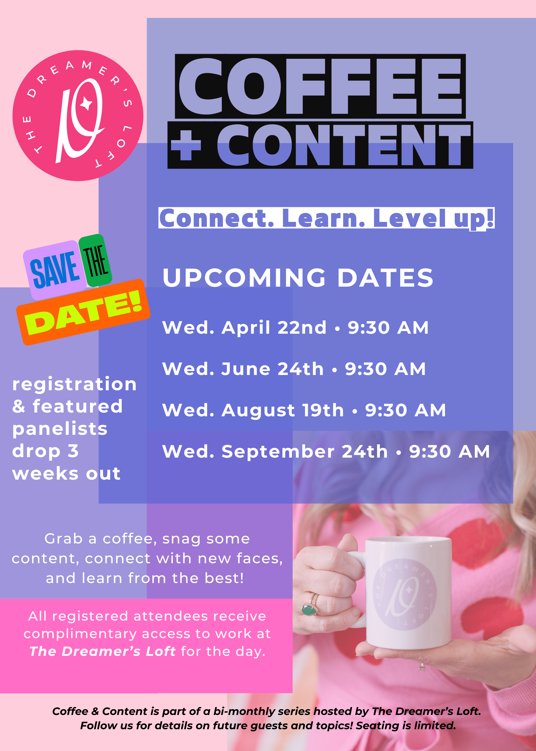 At The Dreamer’s Loft, there’s always something going on! From community meet-ups, events we’re hosting for members and non-members, or private parties, there’s no space quite likes ours to get inspired and celebrate! Check out the calendar below for both public and private events - click into the link for more info on what’s going on and how you can be a part of it! Save the date